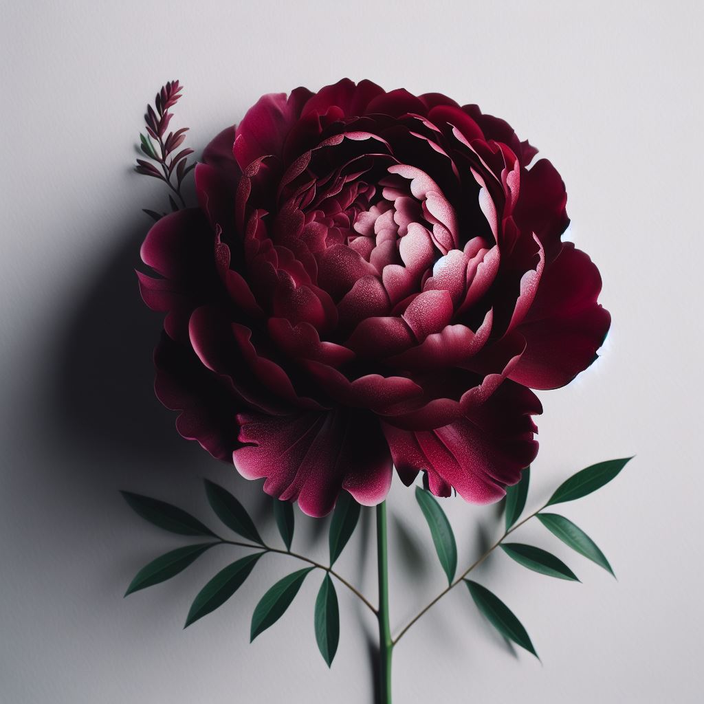 Red peony with green stem