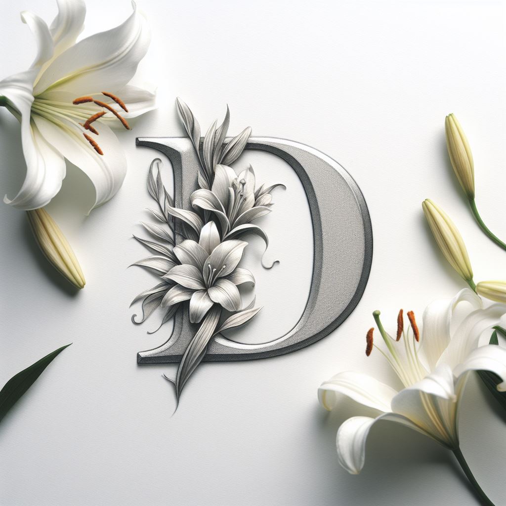 art, beautiful, calligraphy, craft, delicate, design, detail, dimensional, floral, flower, grey, intricate, letter, letterform, lily, paper, papercut, sculpture, typography, white