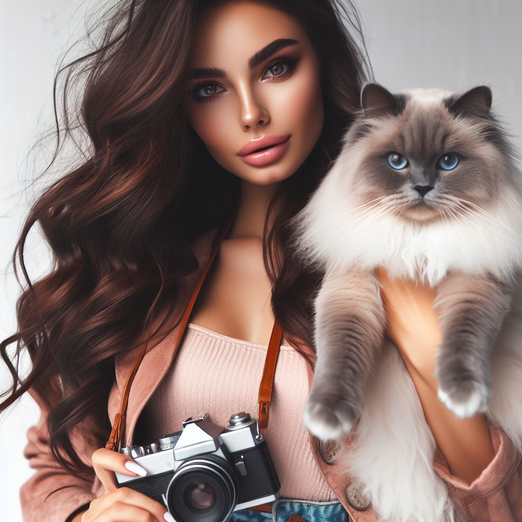 animal, beautiful, beauty, camera, cat, cute, fashion, feline, female, film, furry, glamour, hold, love, model, pet, portrait, style, vintage, woman