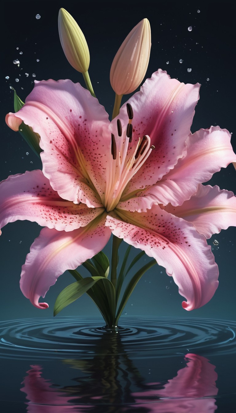 Pink lily in water
