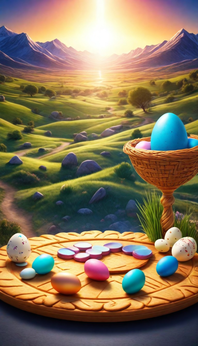 board, celebration, colorful, easter, egg, eggs, festive, fun, game, holiday, landscape, mountains, nature, platform, play, scenery, spring, sunrise, sunset, wooden