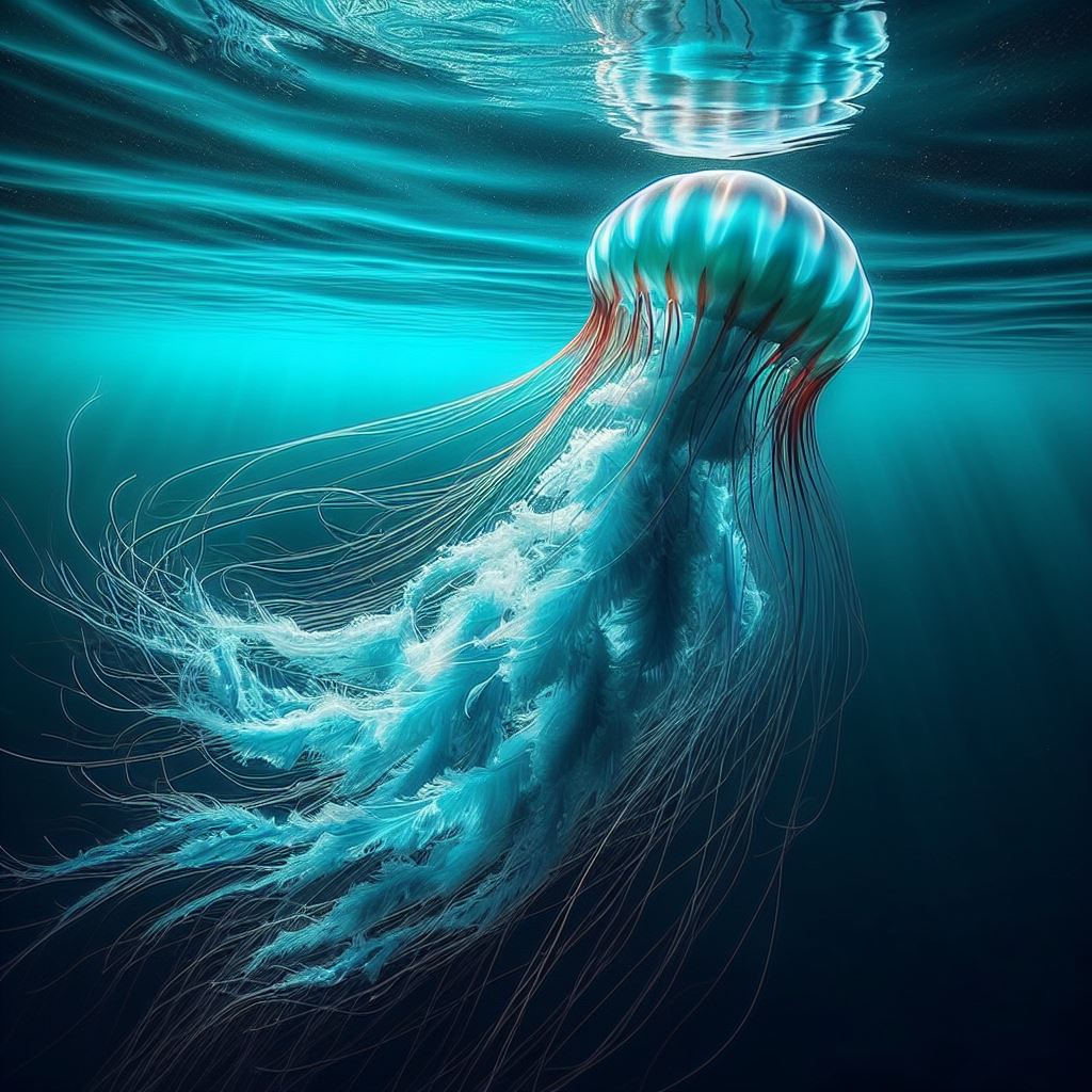 animal, aquatic, bioluminescent, bloom, blue, creature, deep, ecosystem, invertebrate, jellyfish, life, marine, nature, ocean, oceanographic, sea, swimming, tentacles, underwater, wildlife
