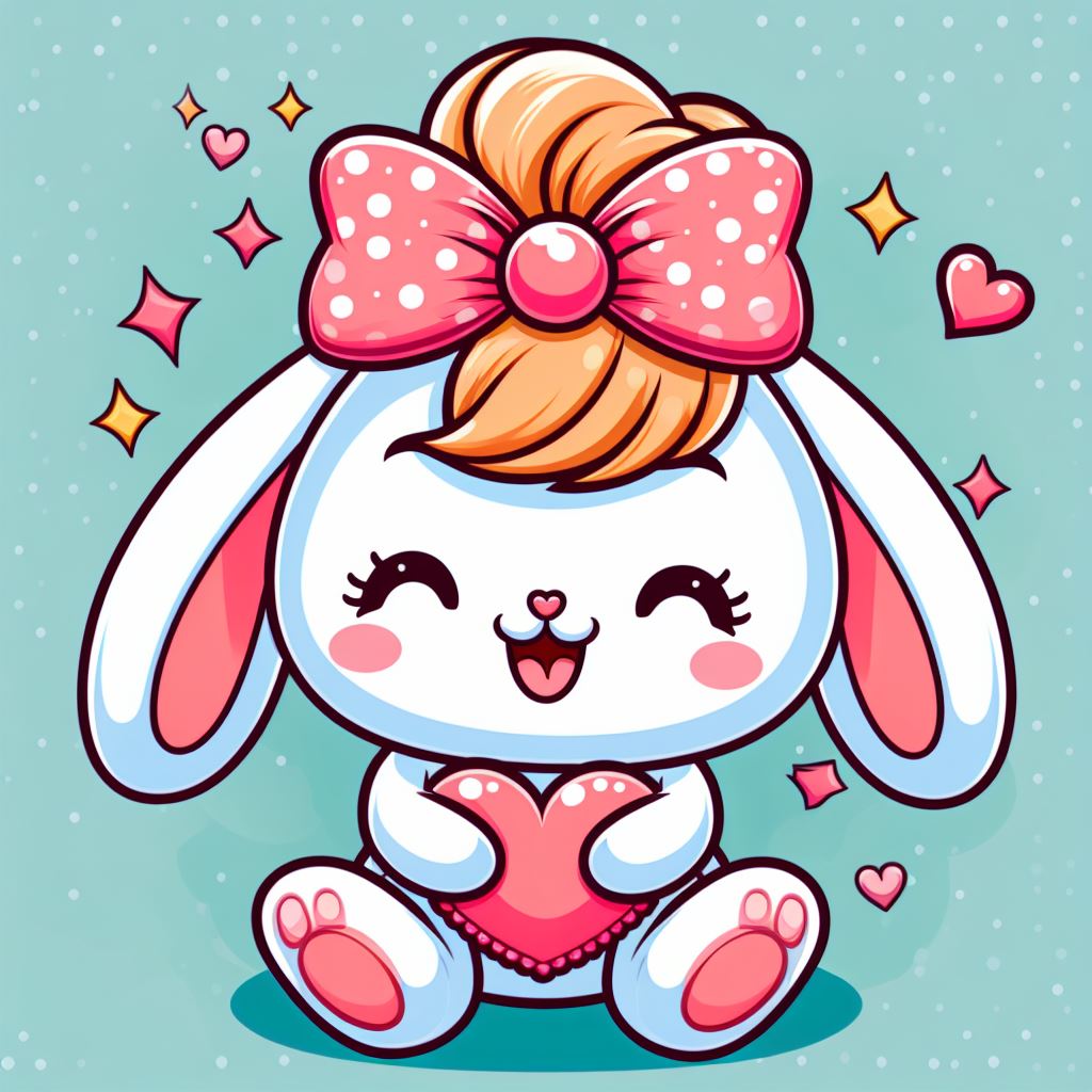 adorable, animal, art, bow, bunny, cartoon, character, cute, digital, drawing, happy, heart, illustration, kawaii, love, pink, rabbit, smile, sweet, white