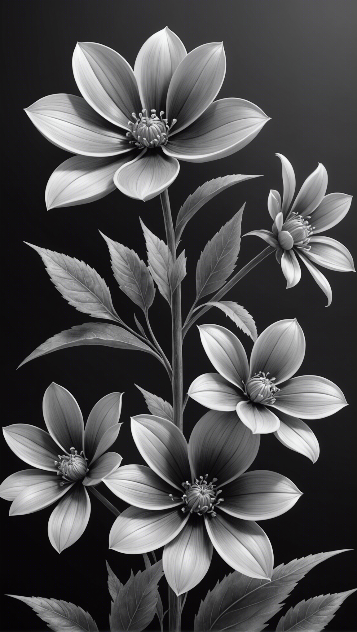 aesthetic, art, background, bloom, botanical, dark, design, drawing, floral, flower, graphic, illustration, leaves, life, monochrome, nature, petals, sketch, stem, still