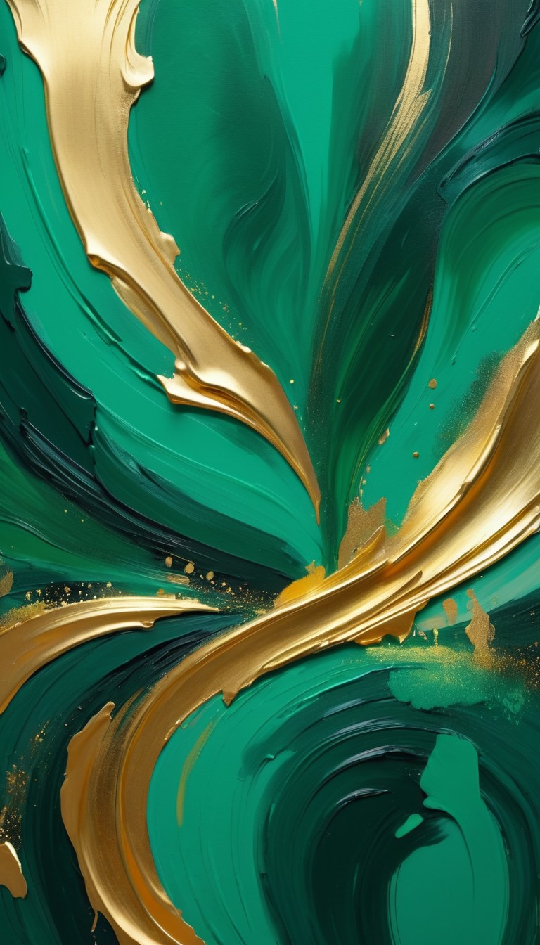 abstract, acrylic, art, artwork, brushstrokes, canvas, color, contemporary, design, fluid, gold, green, metallic, minimalist, modern, oil, painting, swirls, texture, vibrant