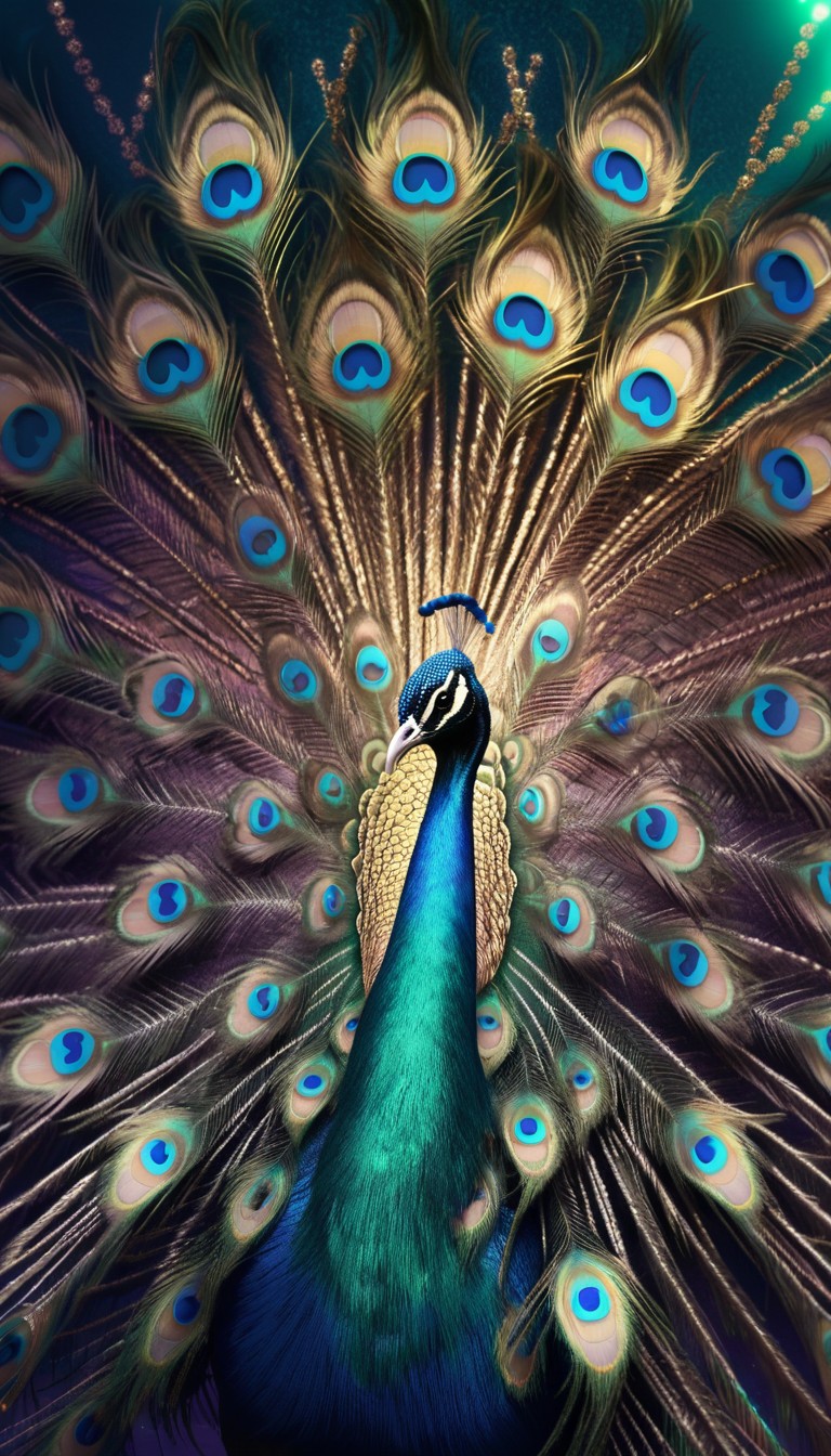 Peacock displaying feathers