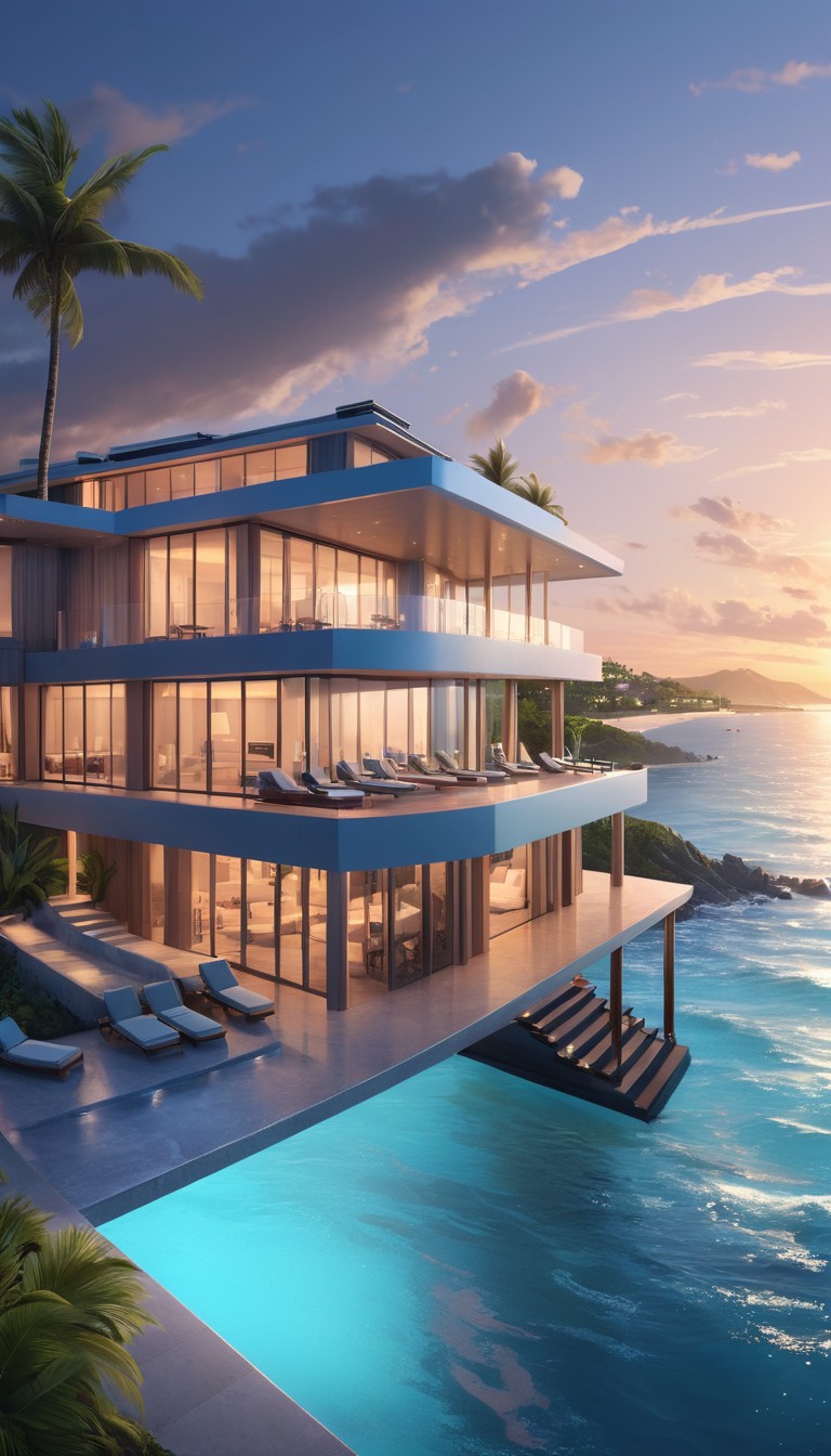 Modern oceanfront villa at sunset