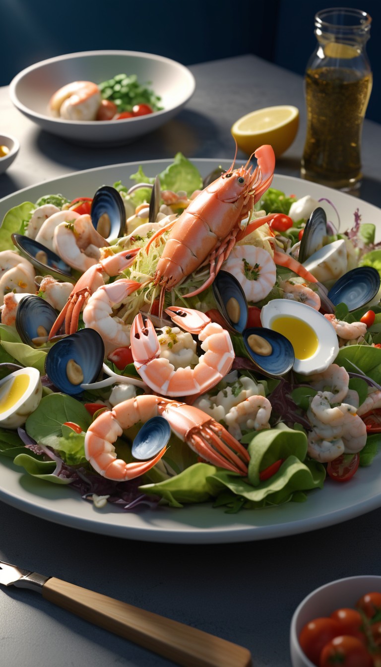 cooking, cuisine, delicious, dinner, egg, food, fresh, gourmet, healthy, lettuce, lobster, lunch, meal, mussels, plate, recipe, salad, seafood, shrimp, tomato