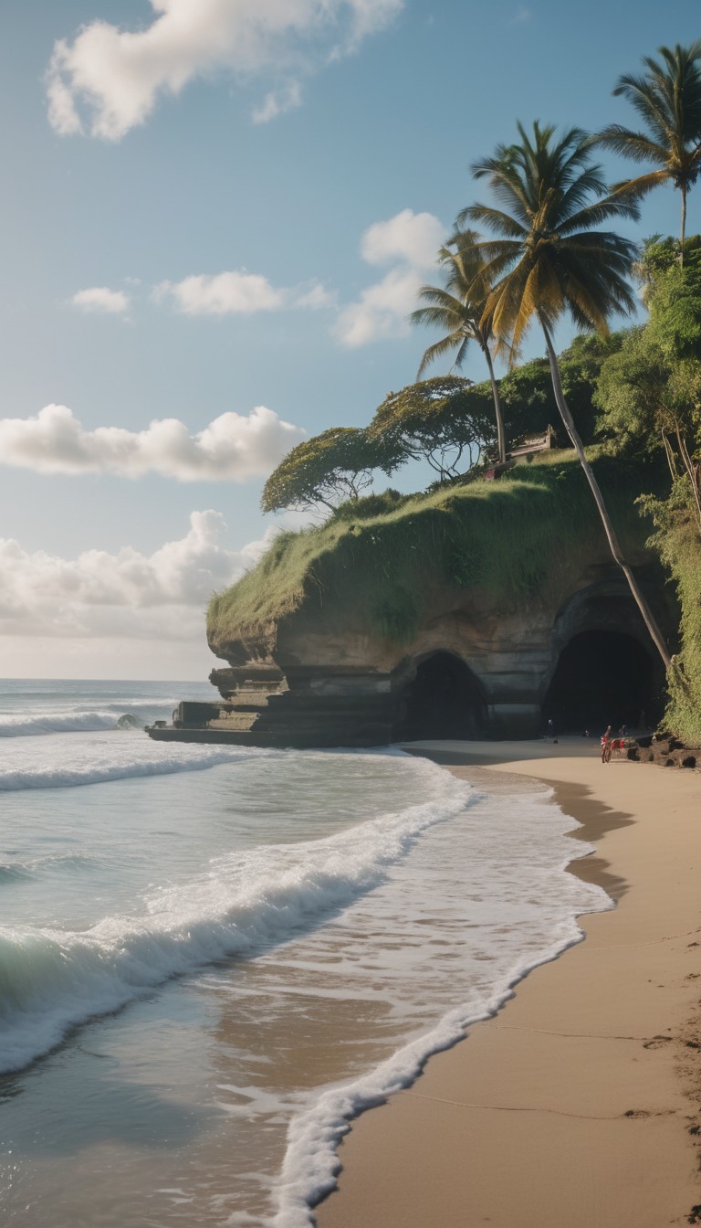 bali, beach, cliff, clouds, coast, indonesia, island, landscape, nature, ocean, palm, sand, scenery, shore, sky, travel, trees, tropical, water, waves