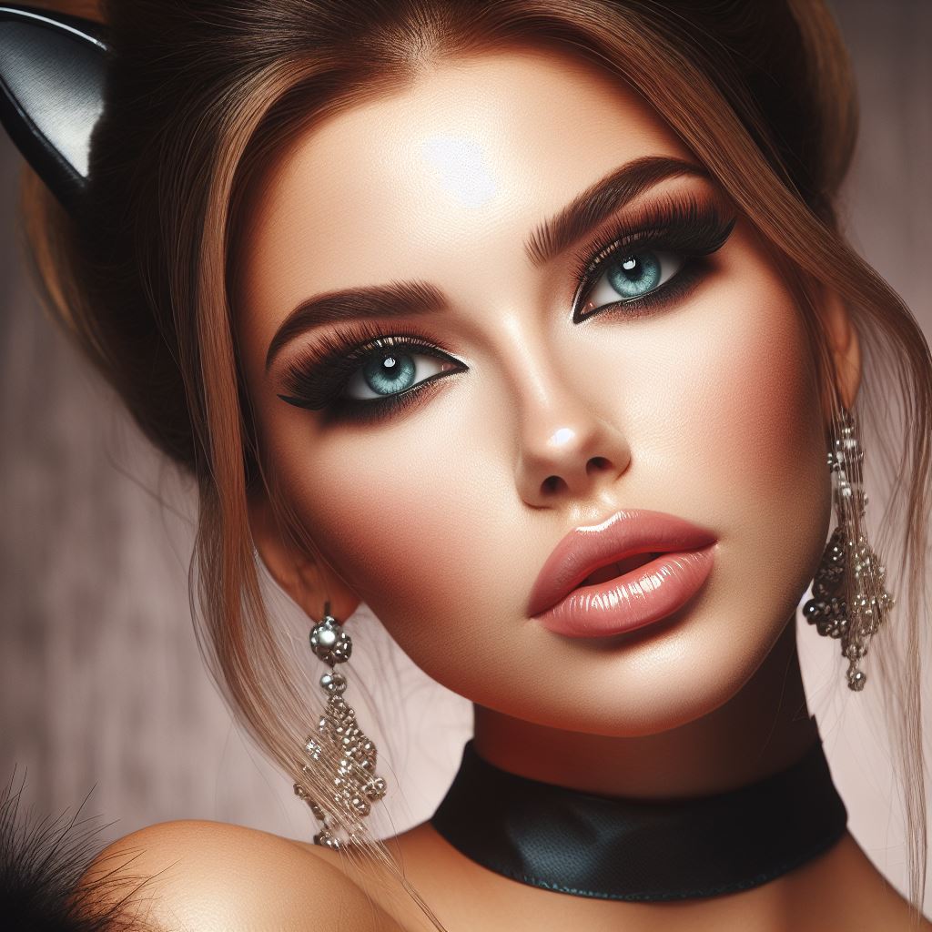 Woman with cat ears and makeup