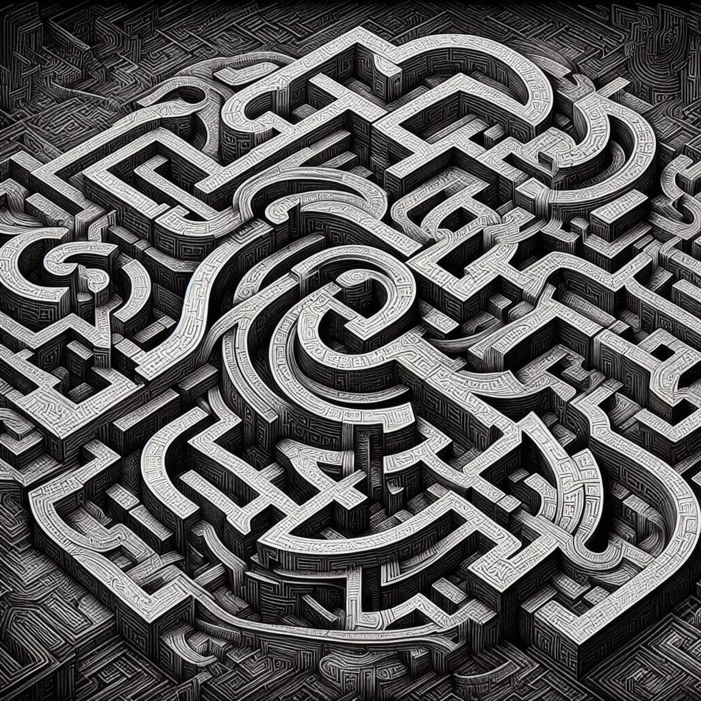 abstract, architecture, art, artwork, black, complex, design, digital, drawing, geometric, graphic, illustration, intricate, labyrinth, lines, maze, pattern, shapes, structure, white