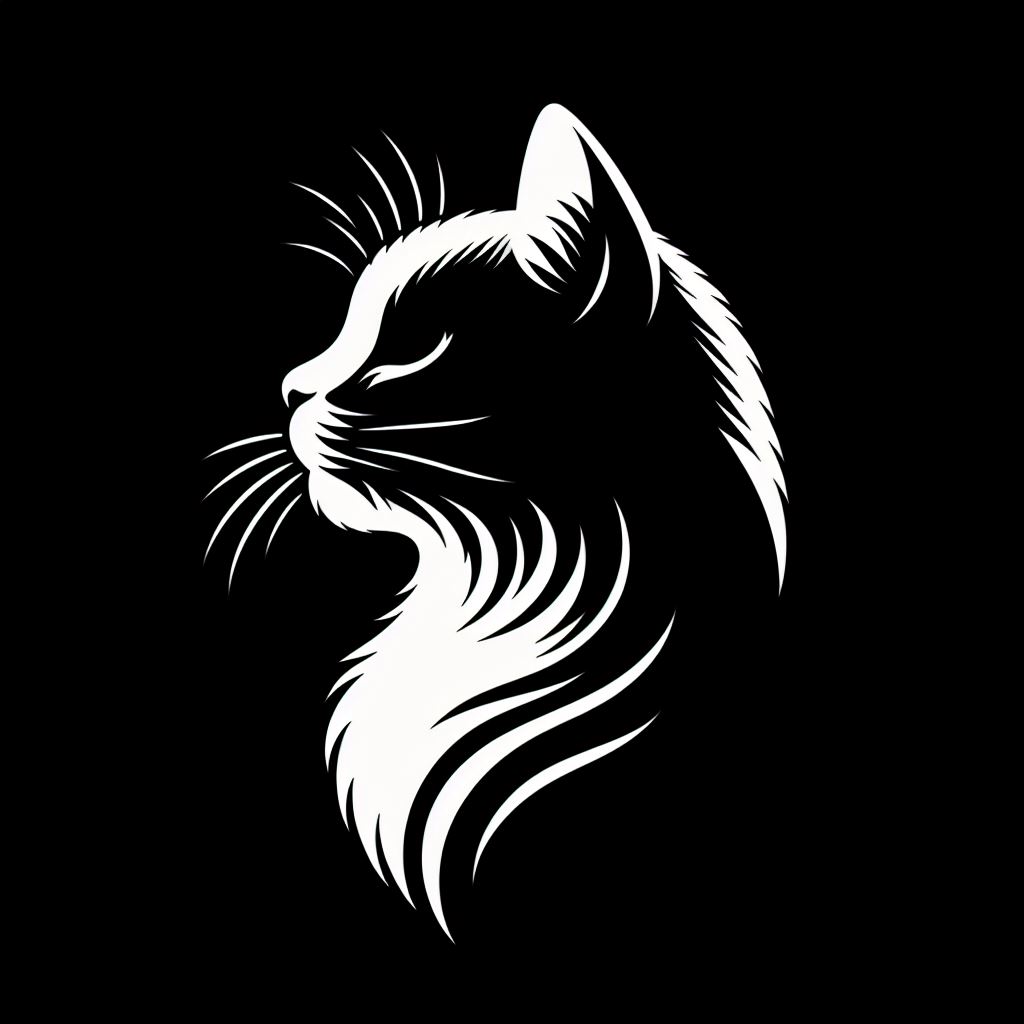 animal, art, background, black, cat, closed, design, eyes, feline, fur, graphic, head, illustration, neck, pet, profile, silhouette, thoughtful, whiskers, white