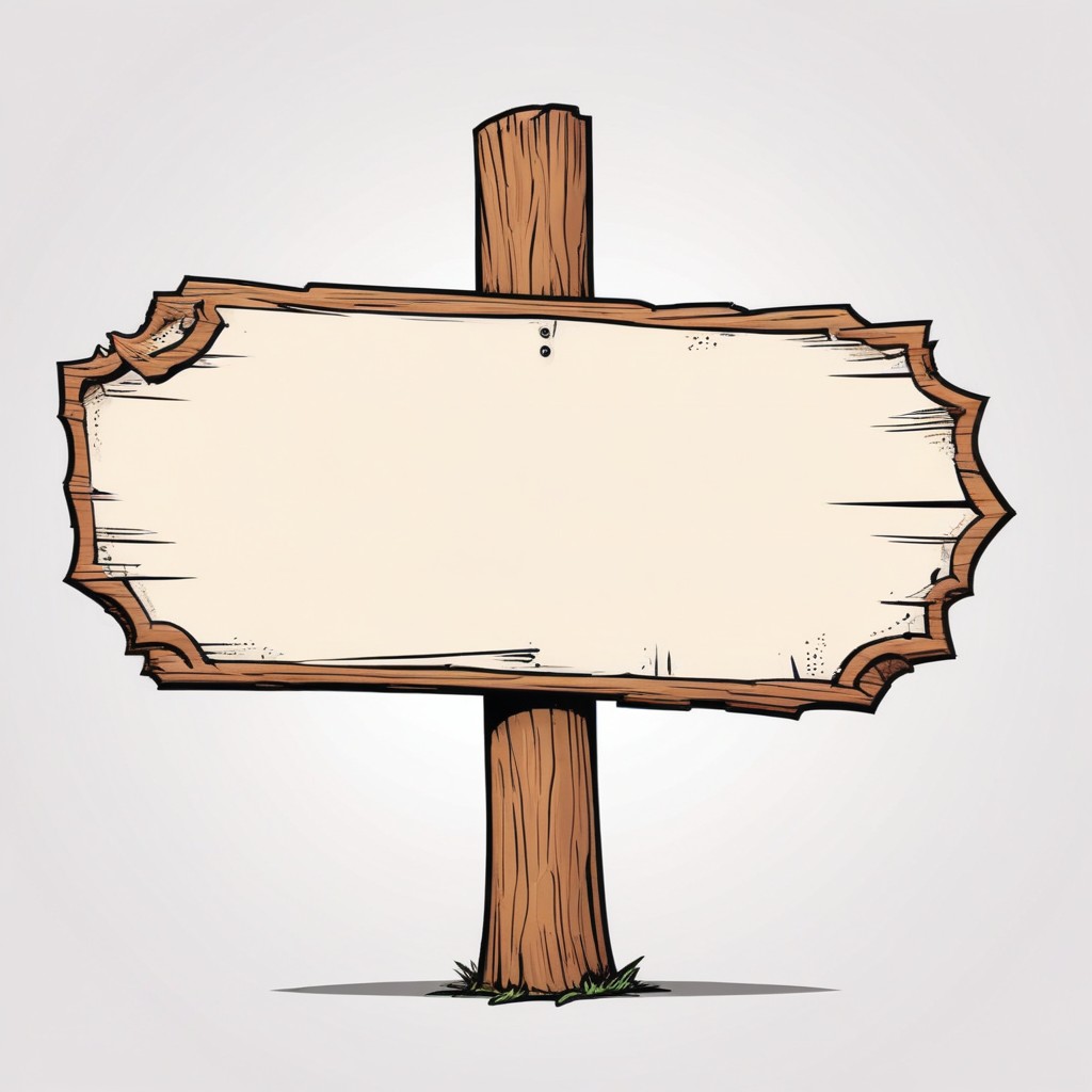 A cartoon illustration of a rustic wooden signpost with a blank sign.