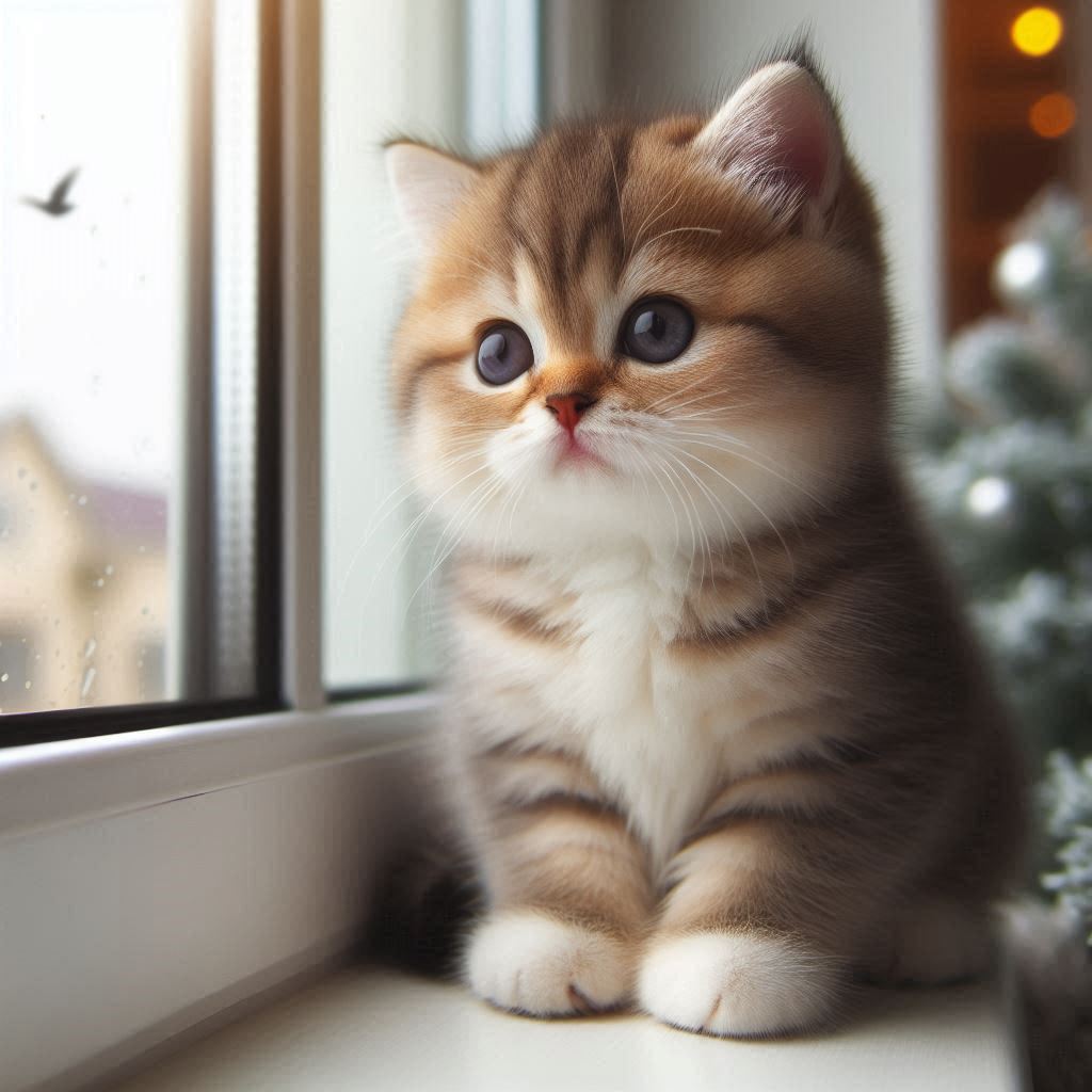 adorable, animal, brown, cat, curious, cute, eyes, fluffy, fur, gazing, home, indoor, kitten, looking, paws, pet, sitting, soft, white, window