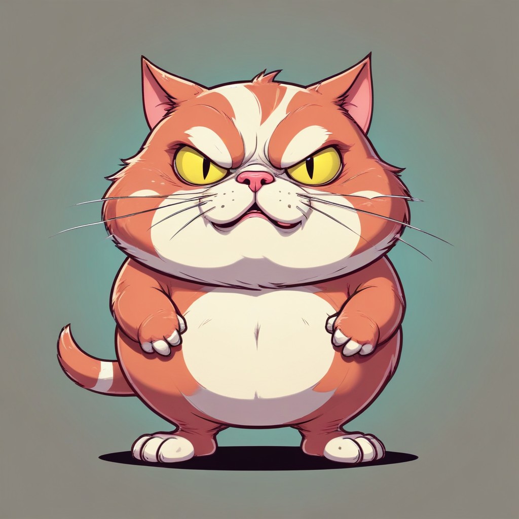 angry, animal, art, cartoon, cat, character, cute, design, digital, expression, eyes, feline, funny, furry, illustration, orange, paws, pet, posture, stare