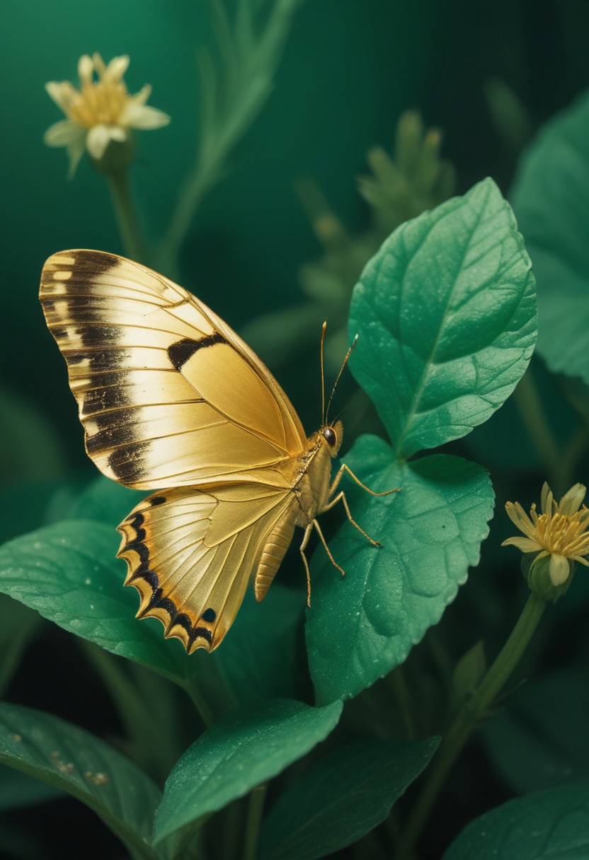 Golden butterfly on green leaf