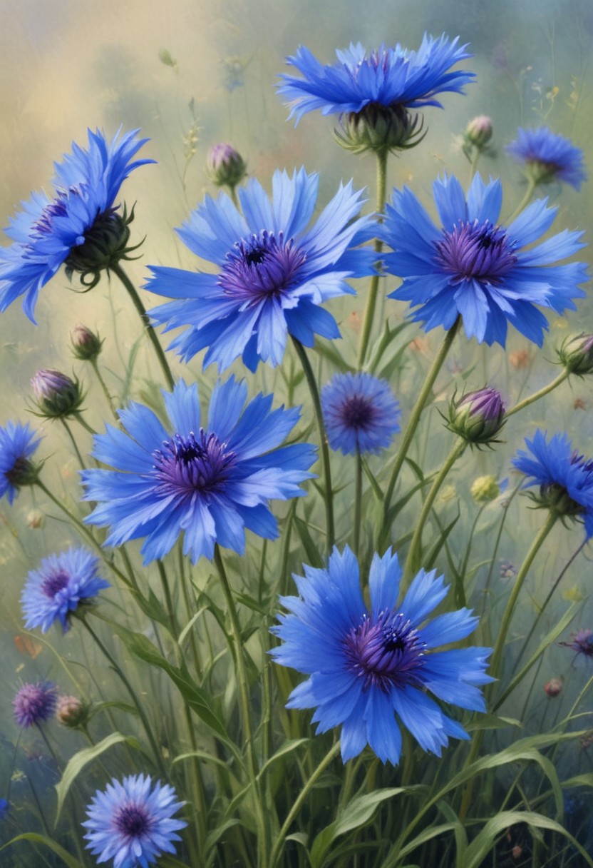beautiful, bloom, blue, botany, colorful, cornflowers, delicate, field, flora, flower, garden, green, nature, petals, plants, stems, summer, sunlight, vibrant, wildflower