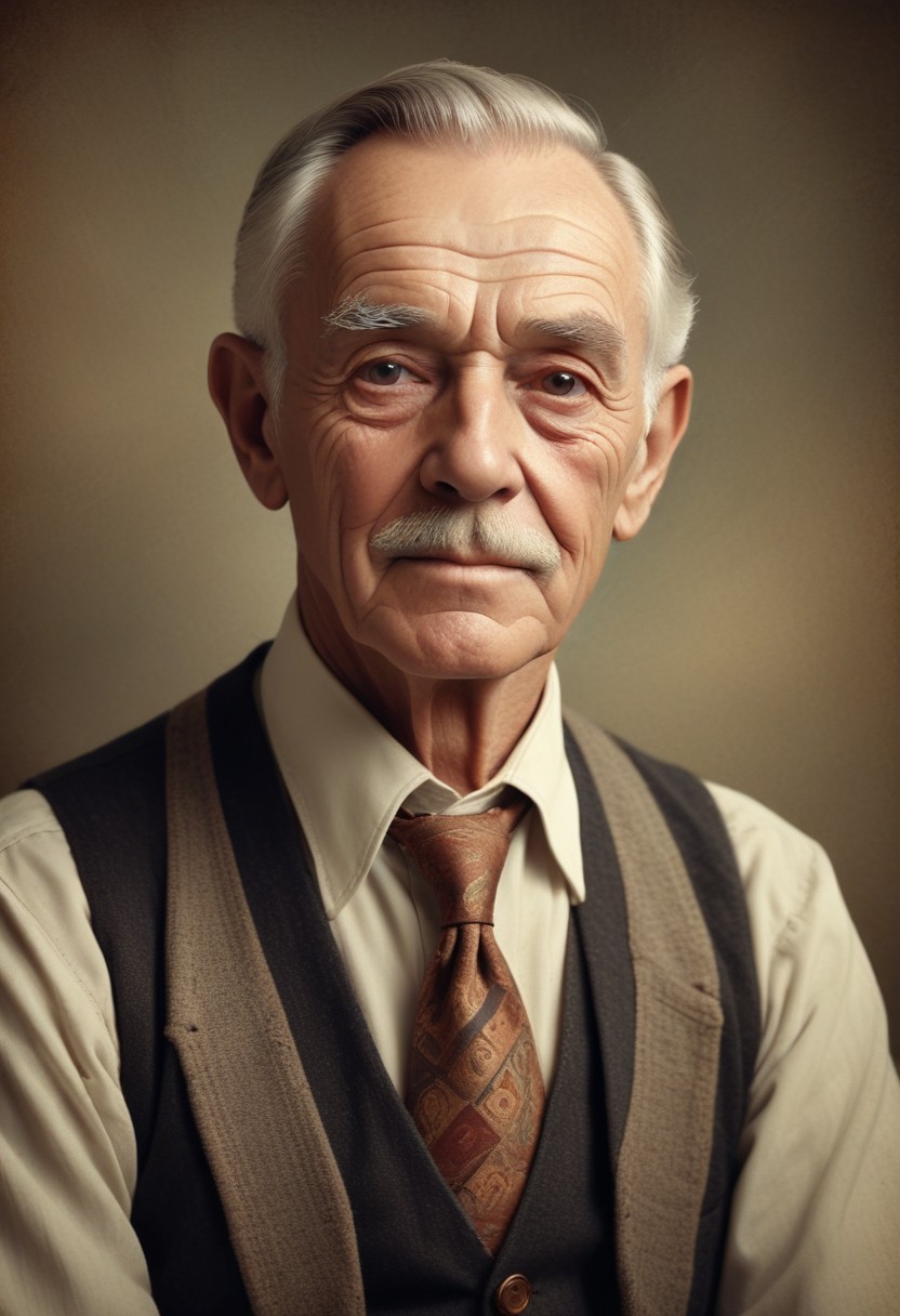 brown, clothing, dignified, elderly, expression, face, formal, gentleman, gray, hair, man, mustache, pattern, portrait, portraiture, senior, shirt, tie, vest, white