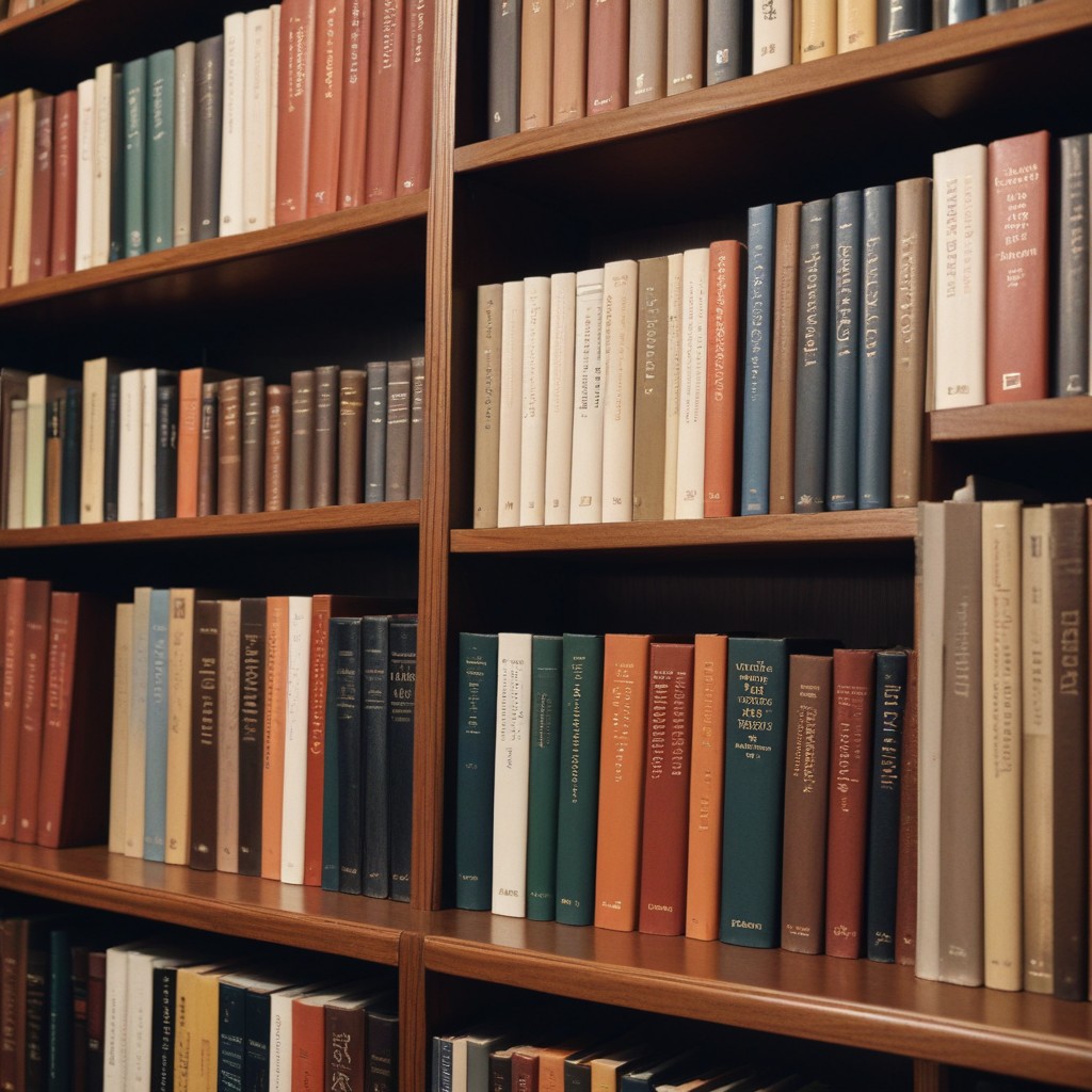 book collection, book spines, bookcase, books, brown wood, colorful books, education, hardcover books, home library, knowledge, library, literature, organized books, reading, stacked books, study, tall shelf, vertical shelf, wooden shelf, bookshelf
