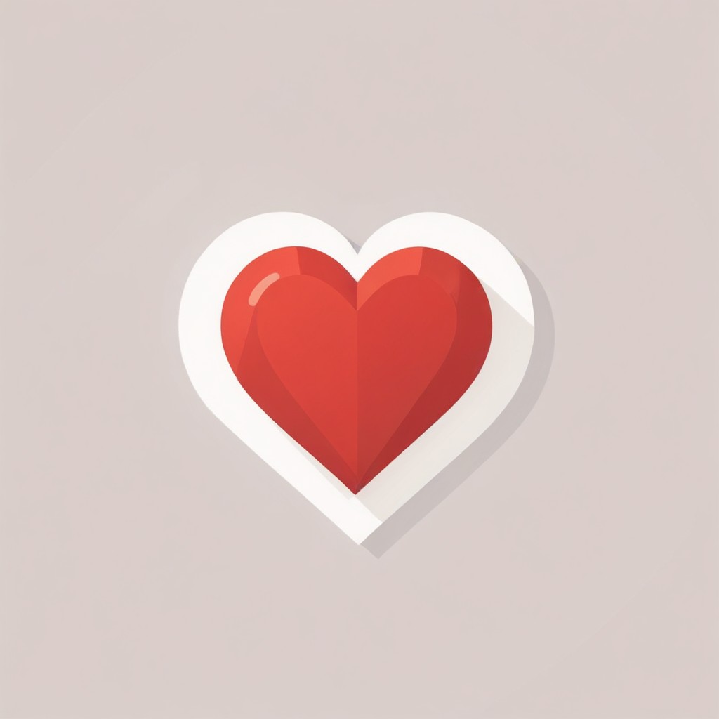 A red heart icon with a white outline and long shadow, on a light gray background.