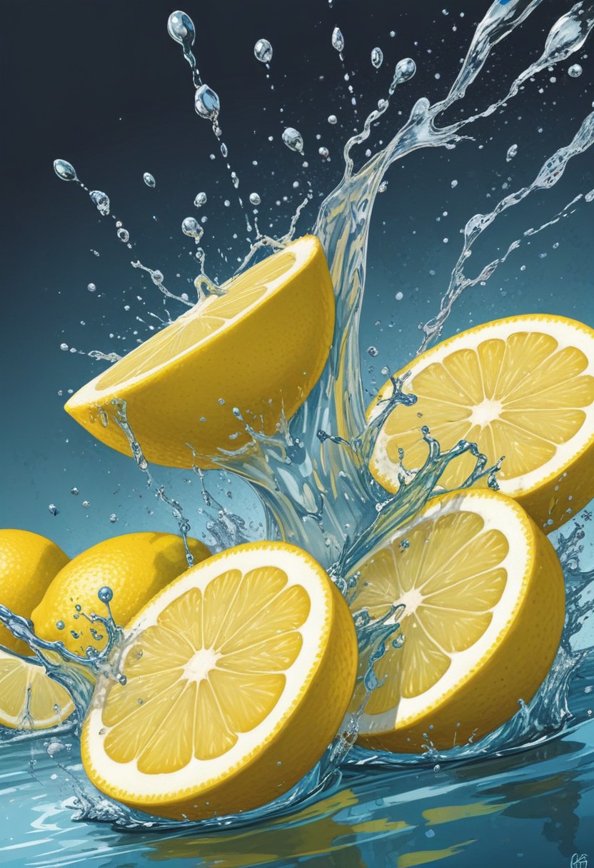 beverage, citrus, drink, food, fresh, fruit, healthy, juicy, lemon, liquid, nature, organic, refreshment, rind, splash, summer, vitamin, water, yellow, zest