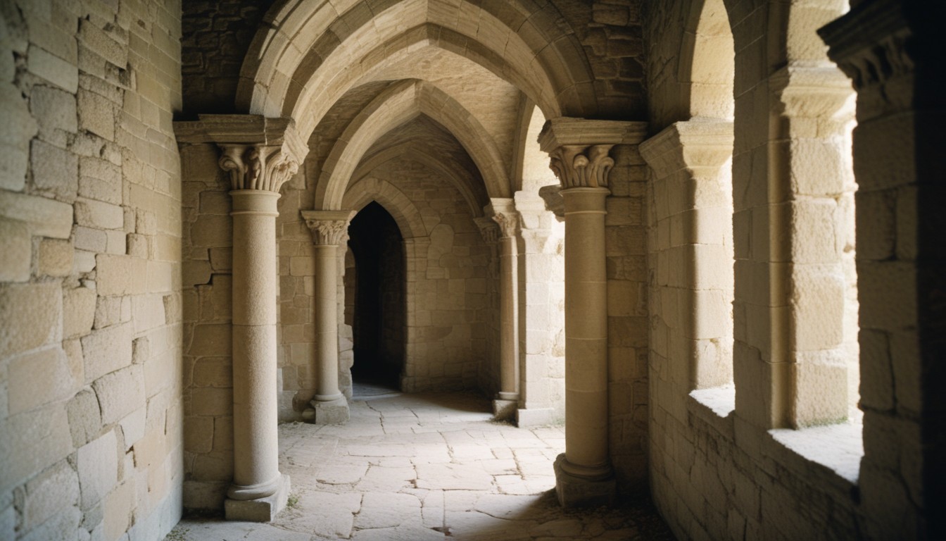 Stone archway in a medieval corridor
