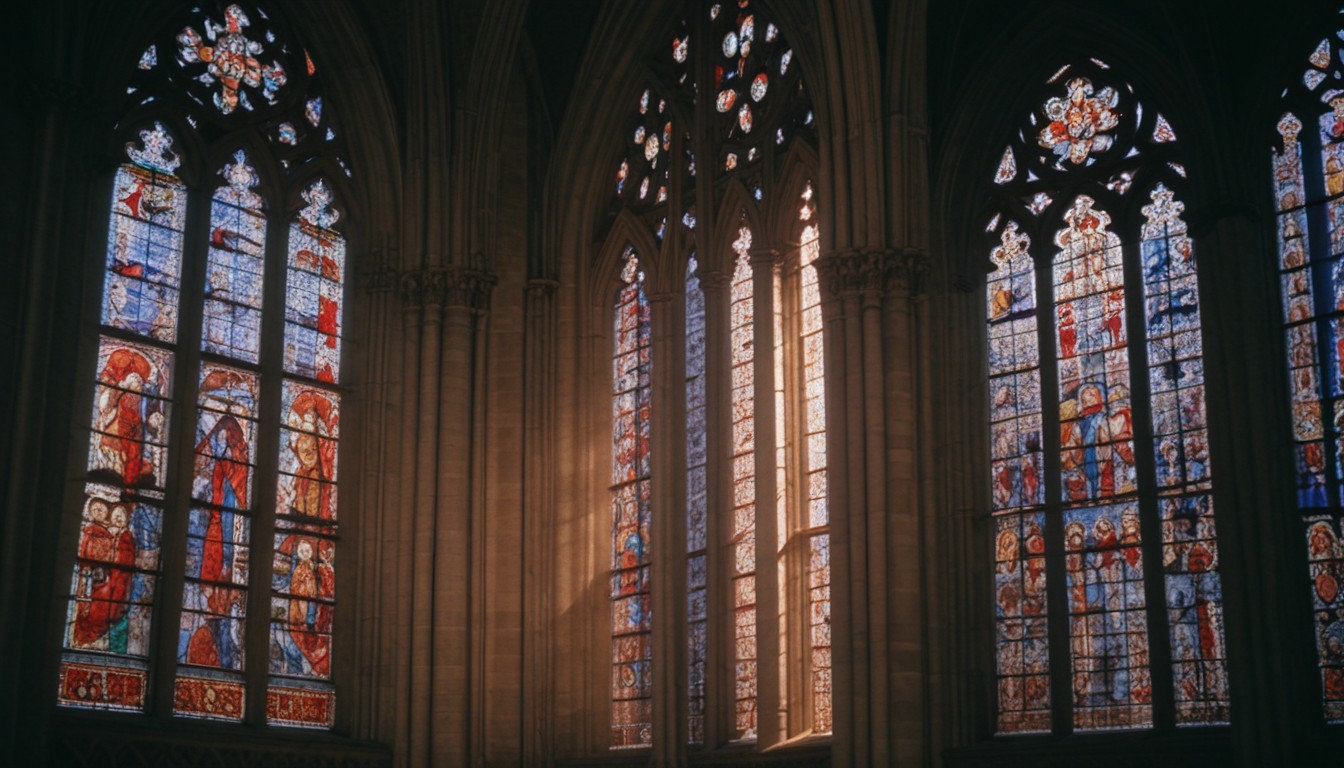 architecture, art, building, cathedral, church, color, design, europe, glass, gothic, historical, history, interior, light, medieval, religious, stained, sunlight, travel, window