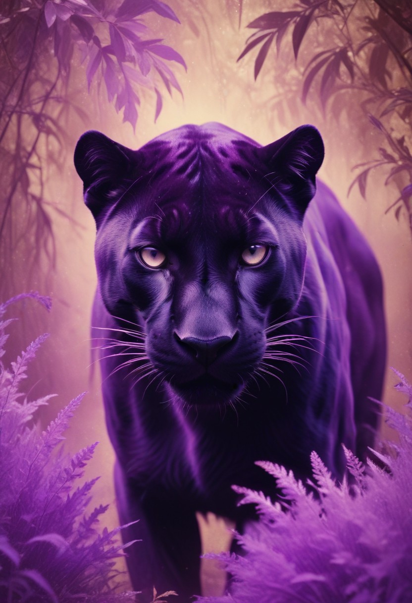 animal, black, cat, dark, feline, foliage, forest, green, jungle, leaves, mammal, nature, panther, predator, purple, through, walk, wild, wilderness, wildlife