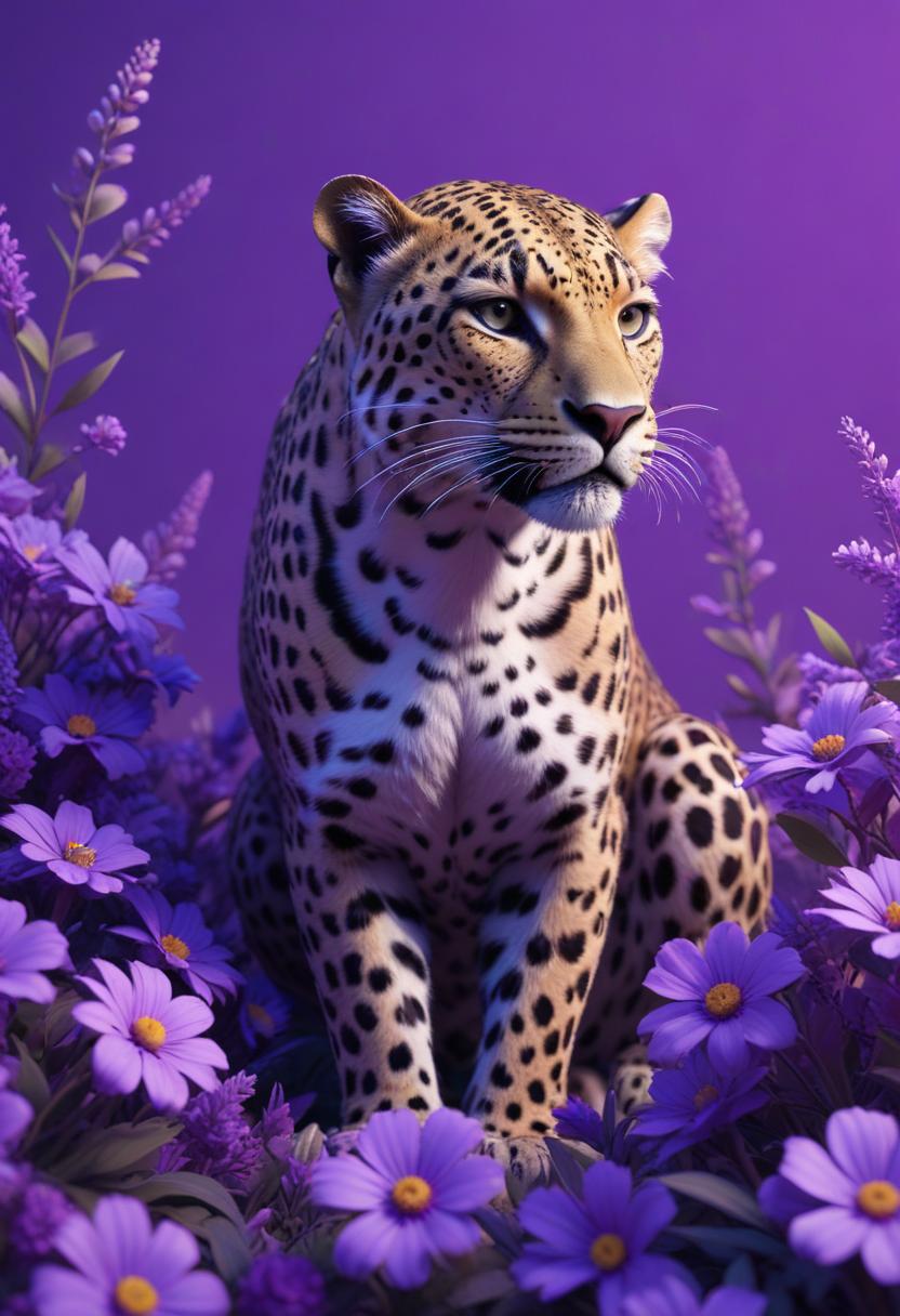 Leopard in purple flowers