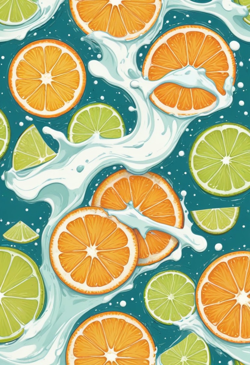abstract, background, beverage, citrus, colorful, design, drink, fresh, fruit, illustration, juicy, lime, liquid, orange, pattern, refreshment, slice, splash, summer, vibrant