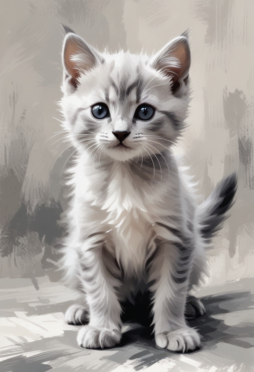 adorable, animal, cat, cute, domestic, eyes, feline, floor, fluffy, fur, gray, innocent, kitten, paws, pet, playful, sitting, small, white, young