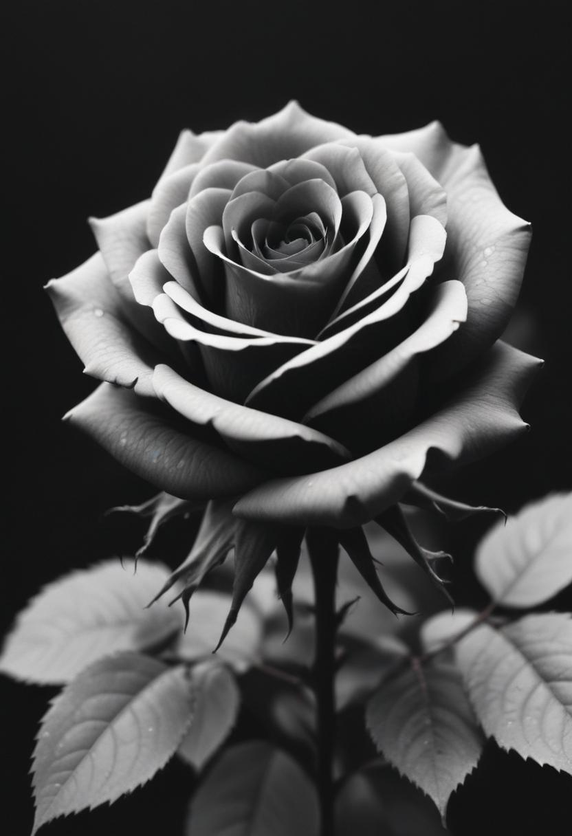 art, beauty, bloom, blossom, botanical, closeup, delicate, elegant, floral, flower, garden, leaves, monochrome, nature, petals, plant, romantic, rose, soft, stem