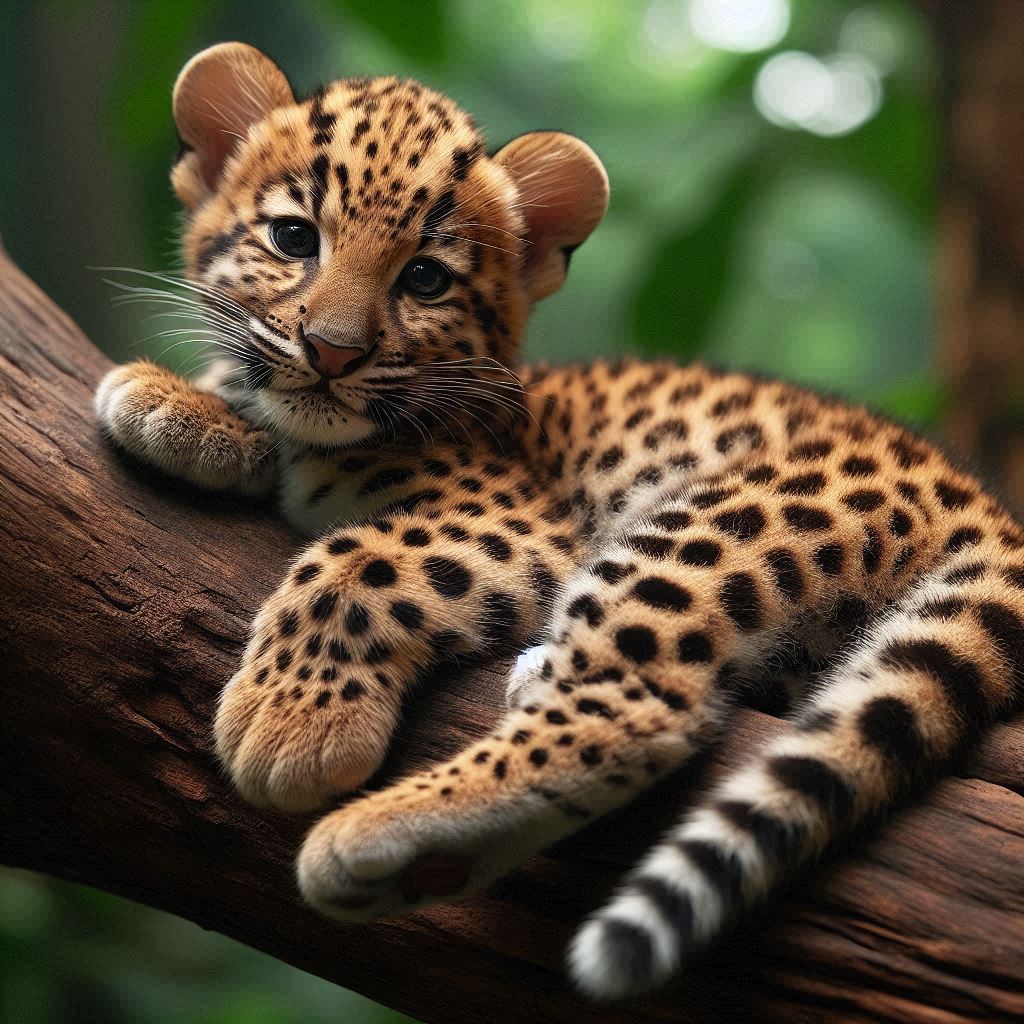 adorable, animal, big, branch, cat, cub, cute, eyes, fur, jungle, leopard, nature, paws, predator, rainforest, resting, spotted, tree, wild, wildlife