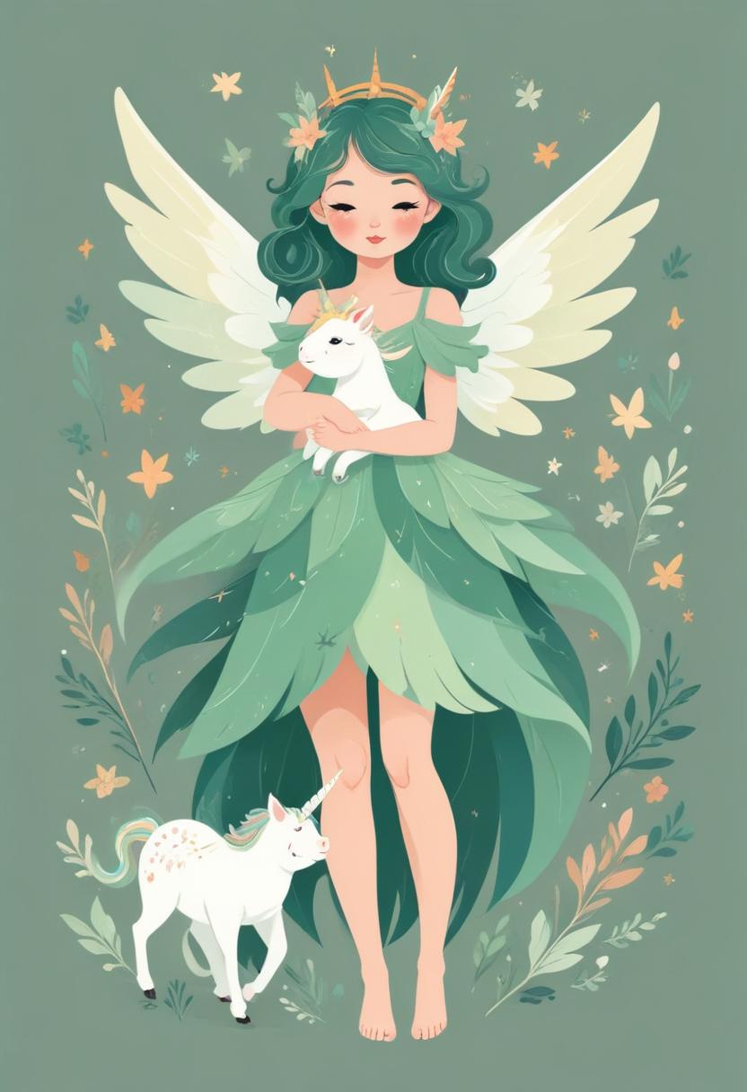 adorable, art, artwork, beautiful, colorful, creature, cute, digital, fairy, fantasy, flower, forest, green, illustration, magical, mythical, nature, unicorn, whimsical, winged