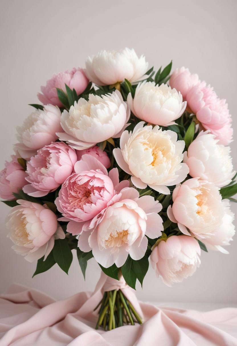 arrangement, beauty, bloom, blossom, bouquet, delicate, elegance, floral, flowers, fragrant, garden, love, nature, peony, petals, pink, ribbon, spring, summer, white