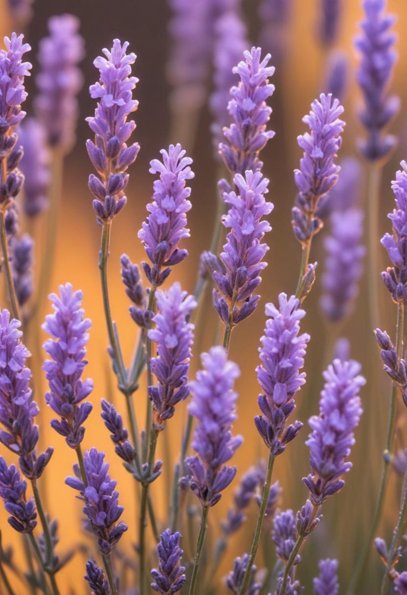 aroma, beauty, bloom, botany, calming, delicate, field, floral, flower, fragrance, herb, lavender, light, nature, peaceful, plant, purple, soft, summer, sunset
