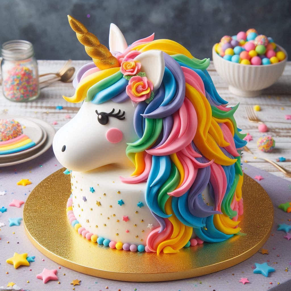 Unicorn cake with rainbow mane