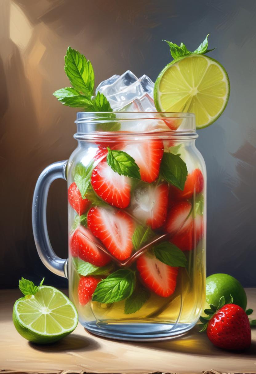 beverage, citrus, cold, delicious, drink, fruit, glass, healthy, ice, jar, juice, lemon, lime, mint, refreshing, refreshment, strawberry, summer, sweet, water