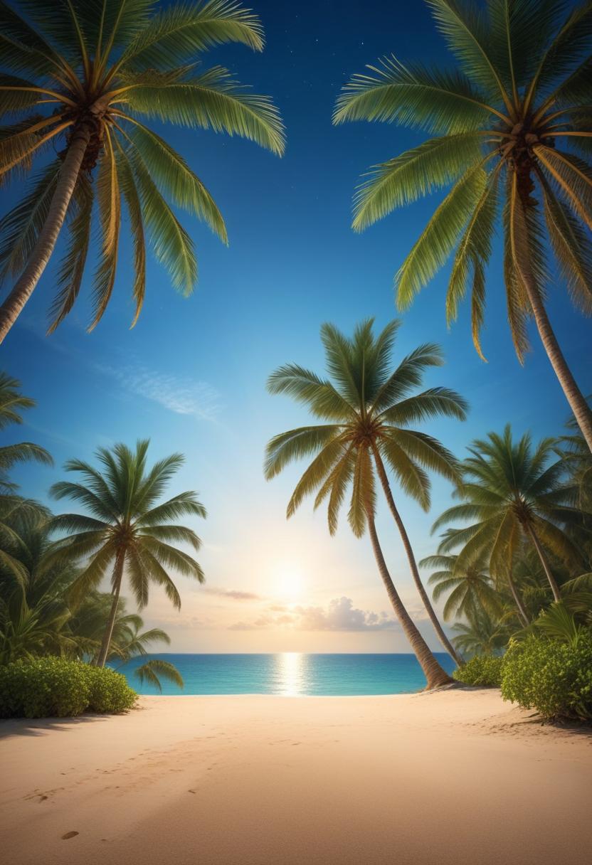 beach, coastline, horizon, island, landscape, nature, ocean, palm, paradise, relaxation, sand, sky, summer, sunset, tranquil, travel, tree, tropical, vacation, water