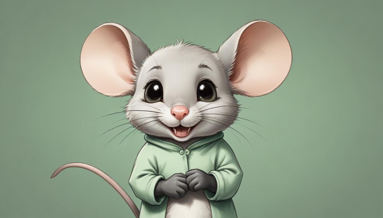 A cartoon mouse wearing a green jacket smiles cheerfully against a green background.