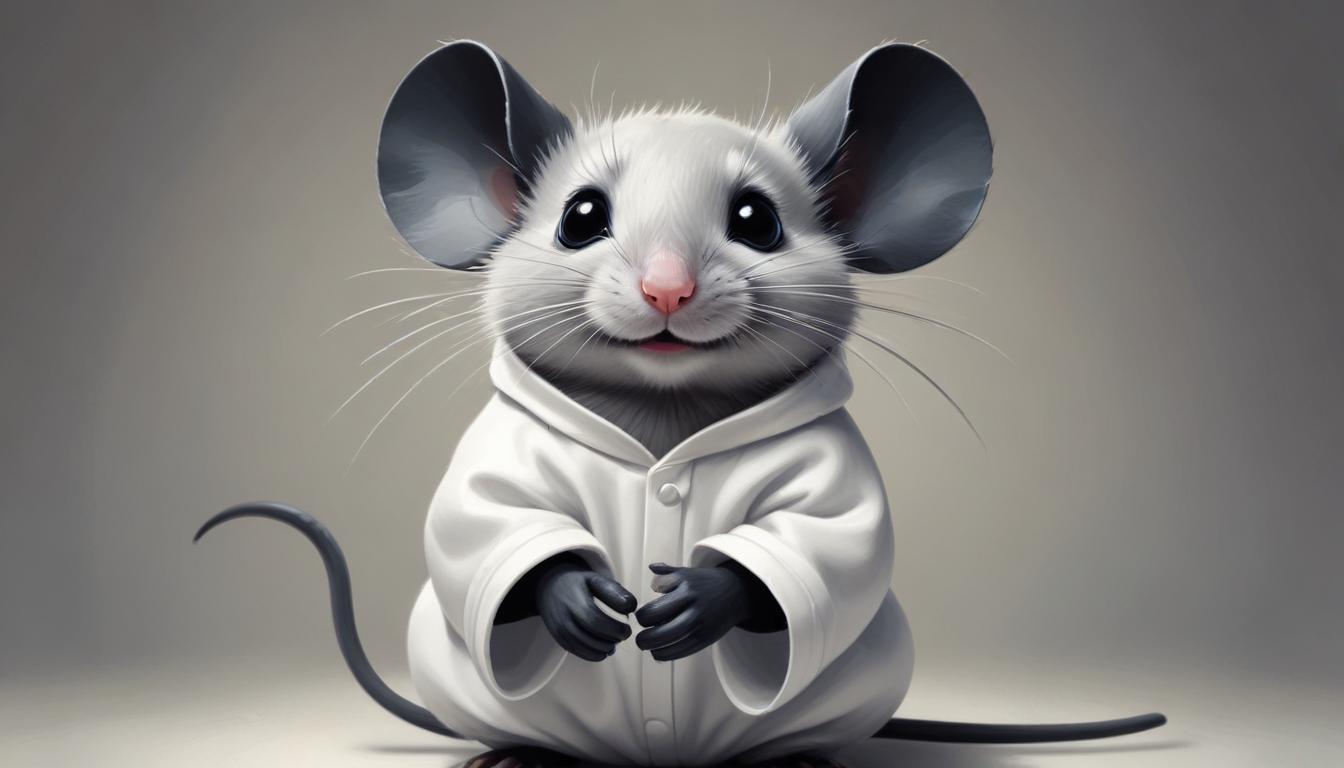 A cute, cartoon-style mouse wearing a white shirt sits and smiles at the camera.