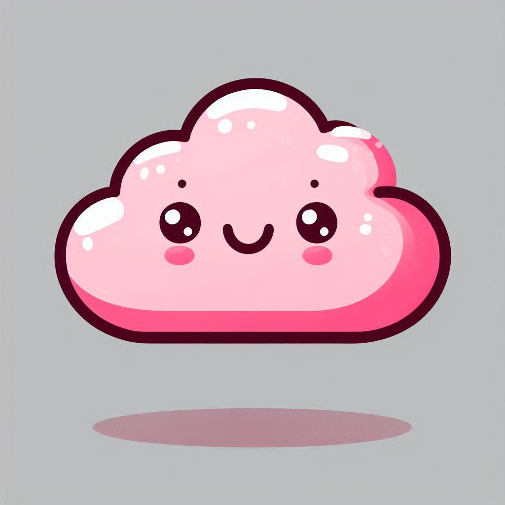 art, cartoon, character, cloud, cute, design, digital, element, fluffy, graphic, happy, illustration, kawaii, mascot, nature, pink, sky, smiling, vector, weather