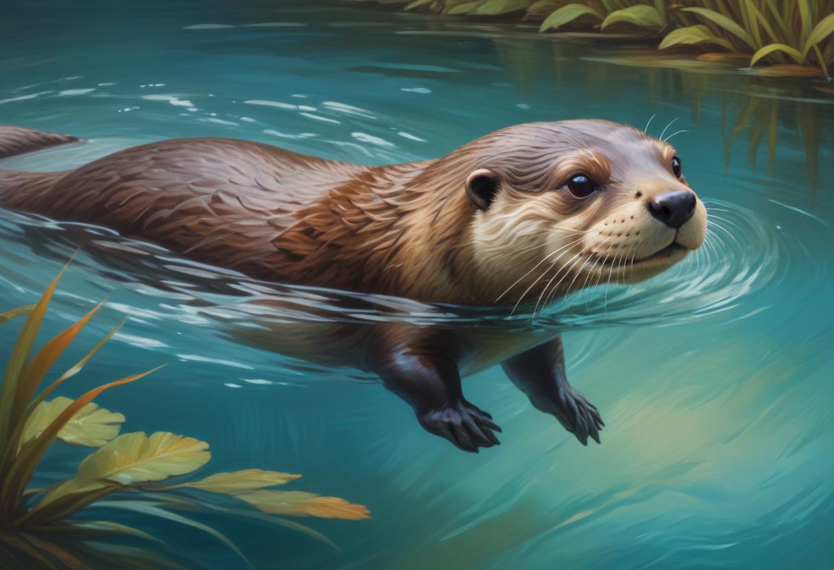 Otter swimming in a pond