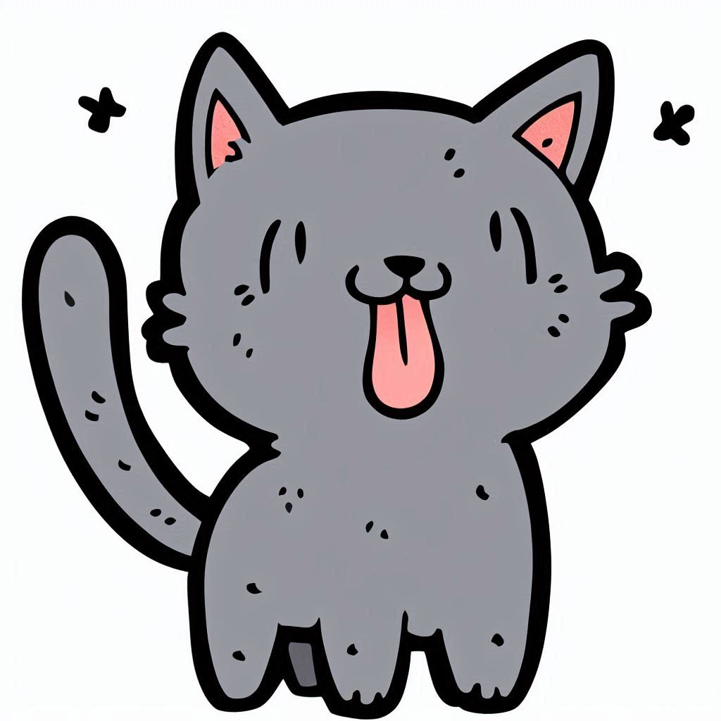 animal, art, cartoon, cat, character, clipart, cute, design, doodle, drawing, feline, funny, gray, happy, illustration, out, pet, pink, sticking, tongue