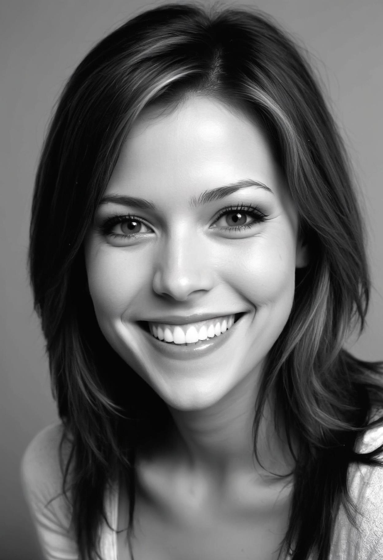 A young woman with long, brown hair smiles broadly at the camera.