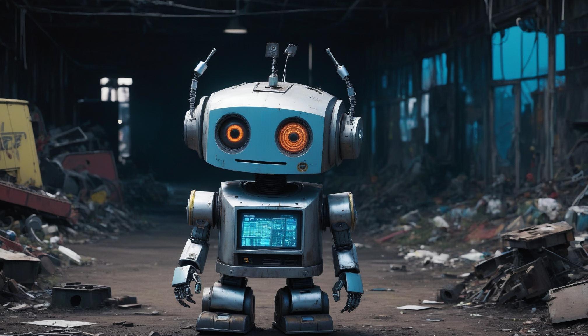 Robot stands in junkyard