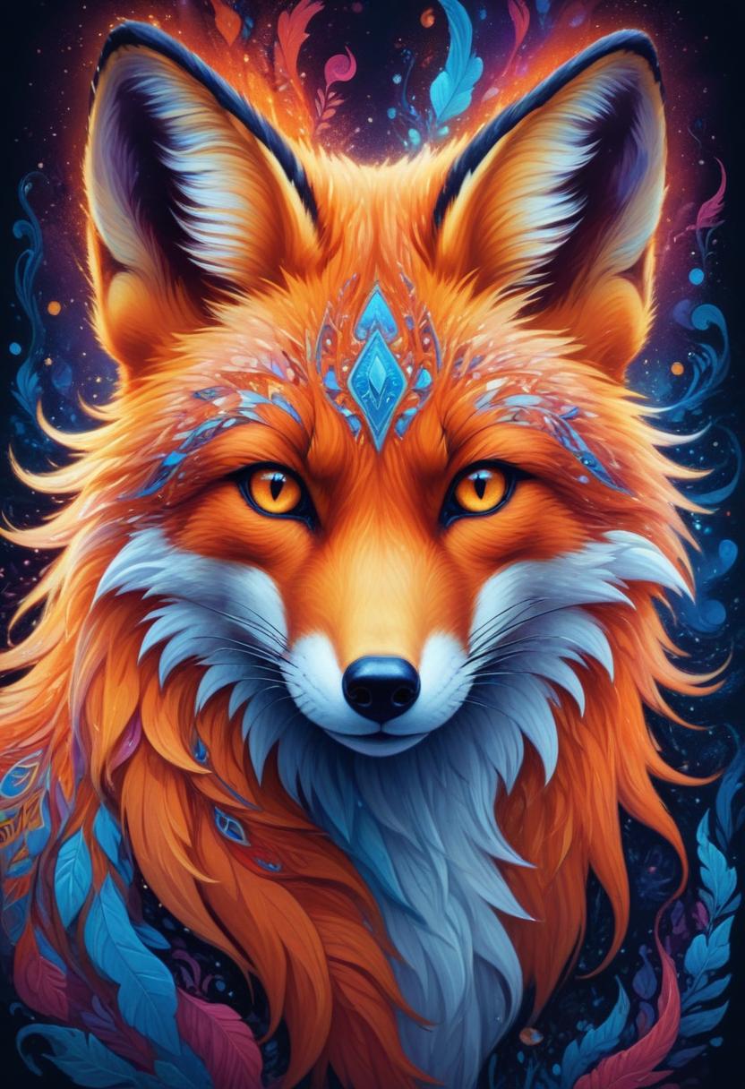 Orange fox with blue feathers