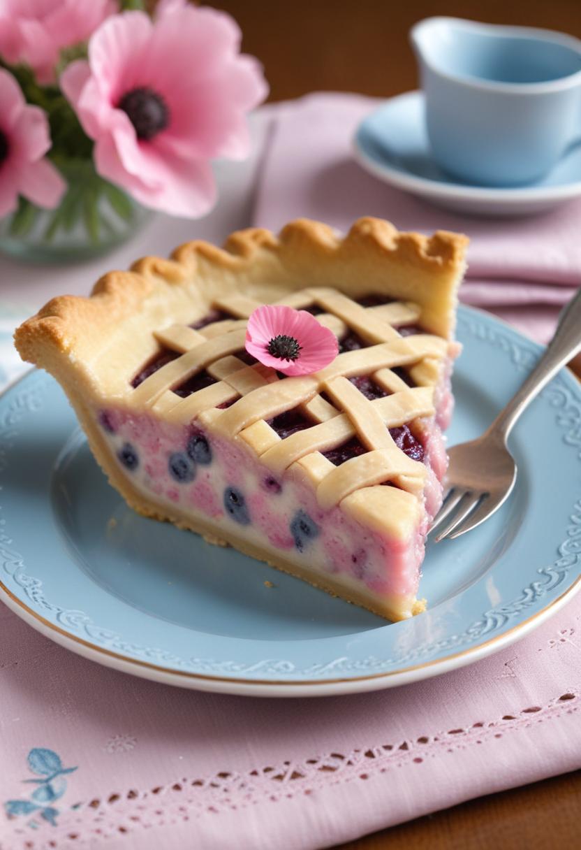 bakery, baking, blue, cream, crust, delicious, dessert, food, fork, fresh, fruit, homemade, lattice, pastry, pie, plate, slice, sweet, treat, yummy