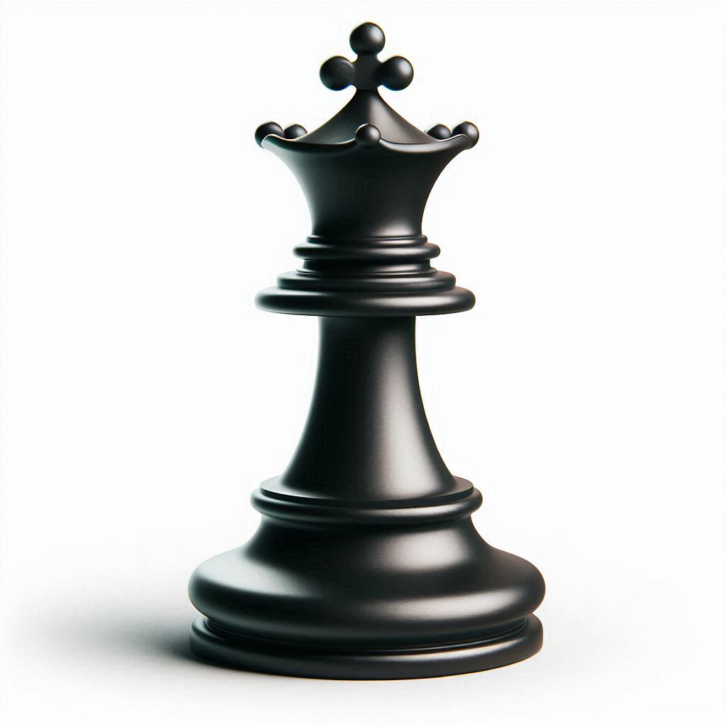 A black chess queen piece is isolated against a white background.