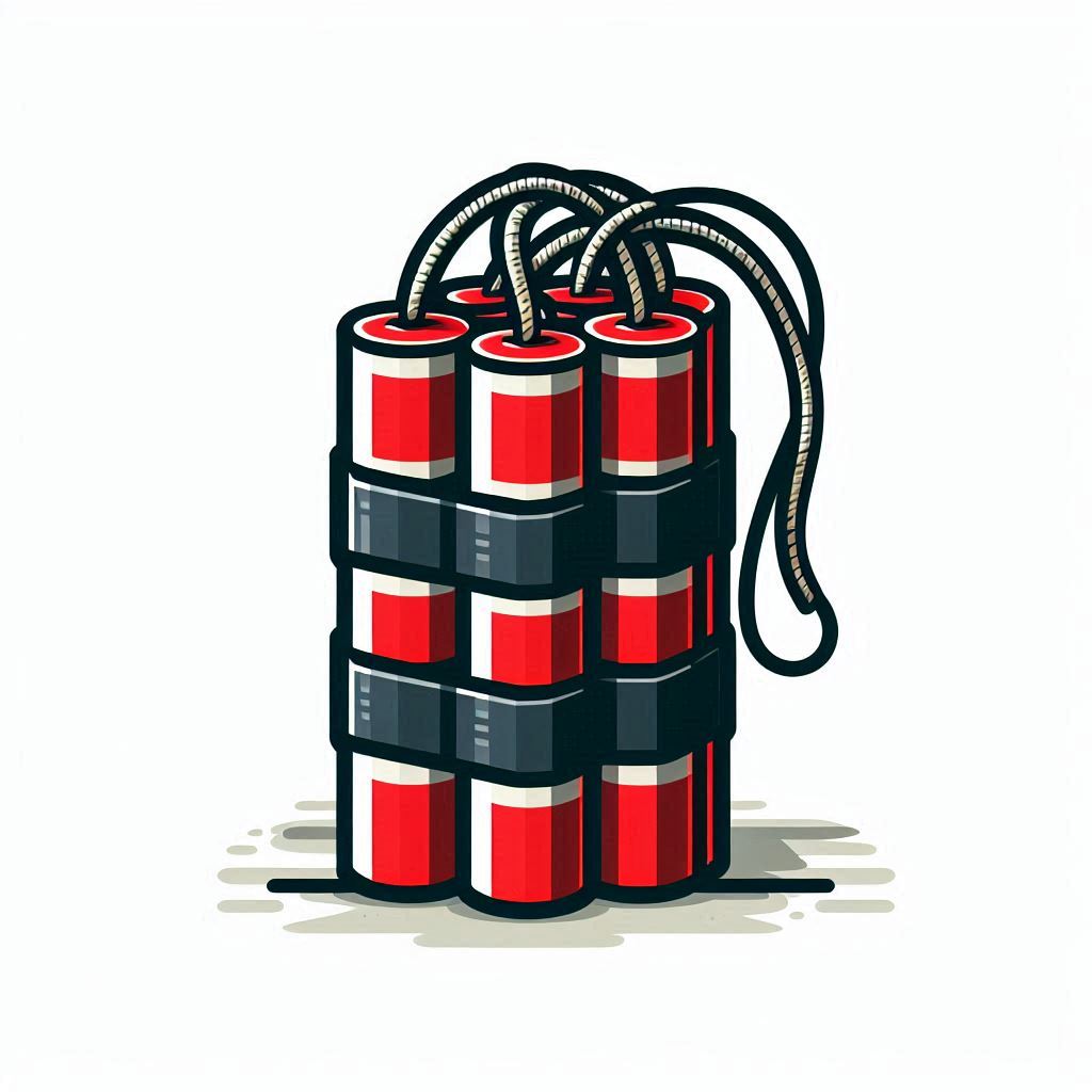 A cartoon drawing of a stick of dynamite with a lit fuse.